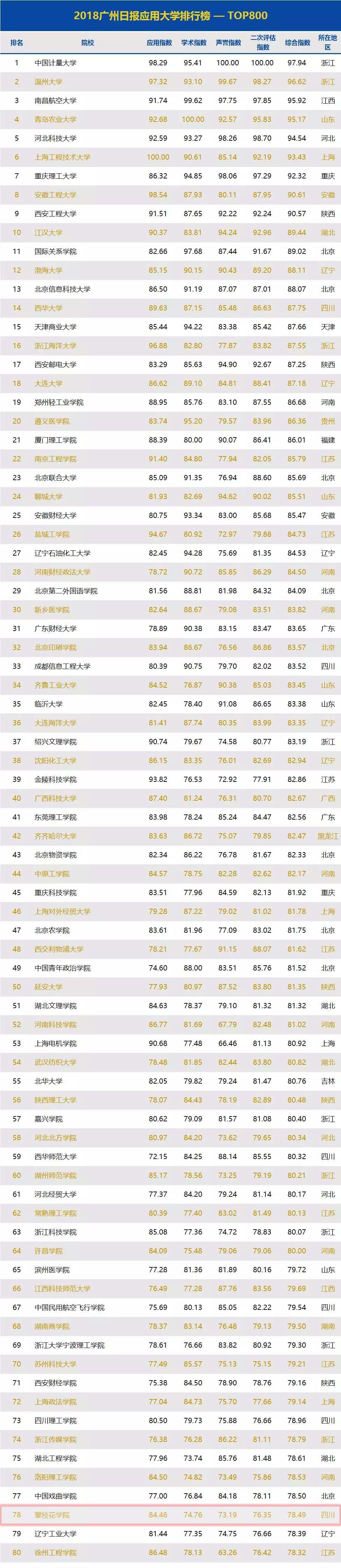 | 2018广州日报应用大学排行榜—应用指数TOP100 |