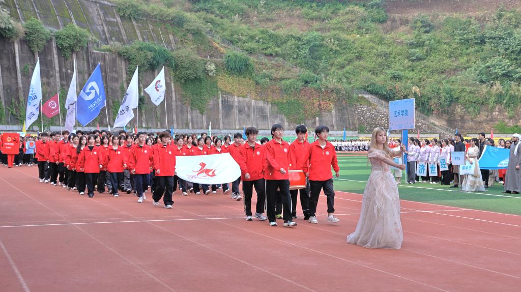 冬日暖阳洒金辉,激越的《运动员进行曲》奏响,裁判方队、校友方队、研究生方队、留学生方队、各分工会教工方队与二级学院学生方队,精神抖擞、步伐铿锵,列队入场。他们步履挺拔、目光坚毅,依次经过主席台,用创意十足的表演,生动呈现校园的青春活力与健康向上的风采。