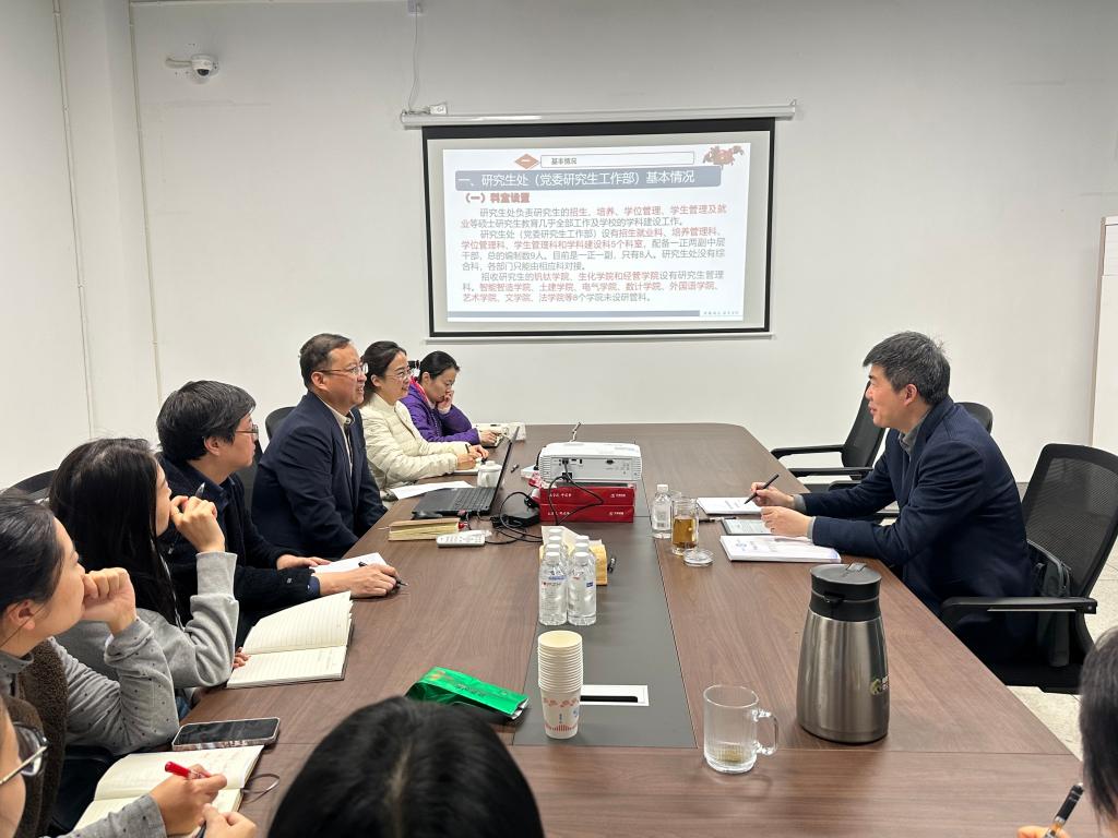 1222日下午,党委常委、副校长段明到研究生处调研指导学科建设和研究生工作。研究生处全体成员参加调研。