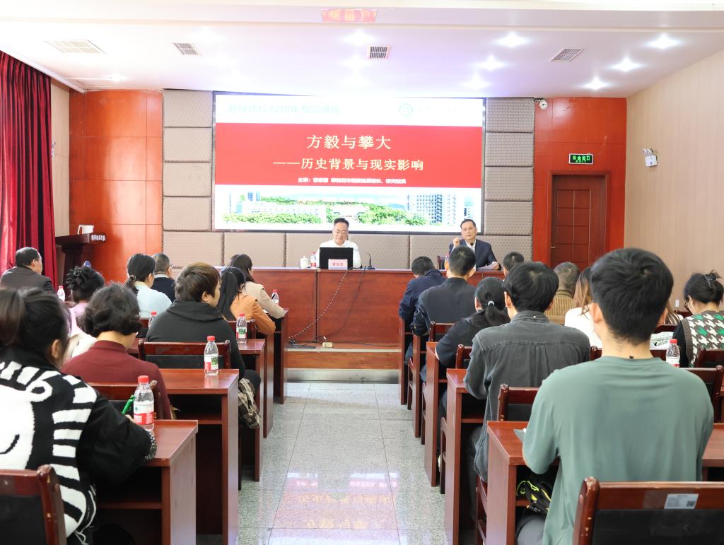 在建校42周年来临之际,为传承红色基因、凝聚奋进力量, 116日下午,图书馆联合科研处、招就处在弘毅楼416会议室举办了题为方毅与攀大——历史背景与现实影响”的专题讲座。招就处处长唐林主持会议。科研处、招就处、图书馆相关领导,图书馆全馆职工、各单位兼职档案员、校史讲解团学生讲解员、文学院学生代表和校友协会代表100余人聆听讲座。