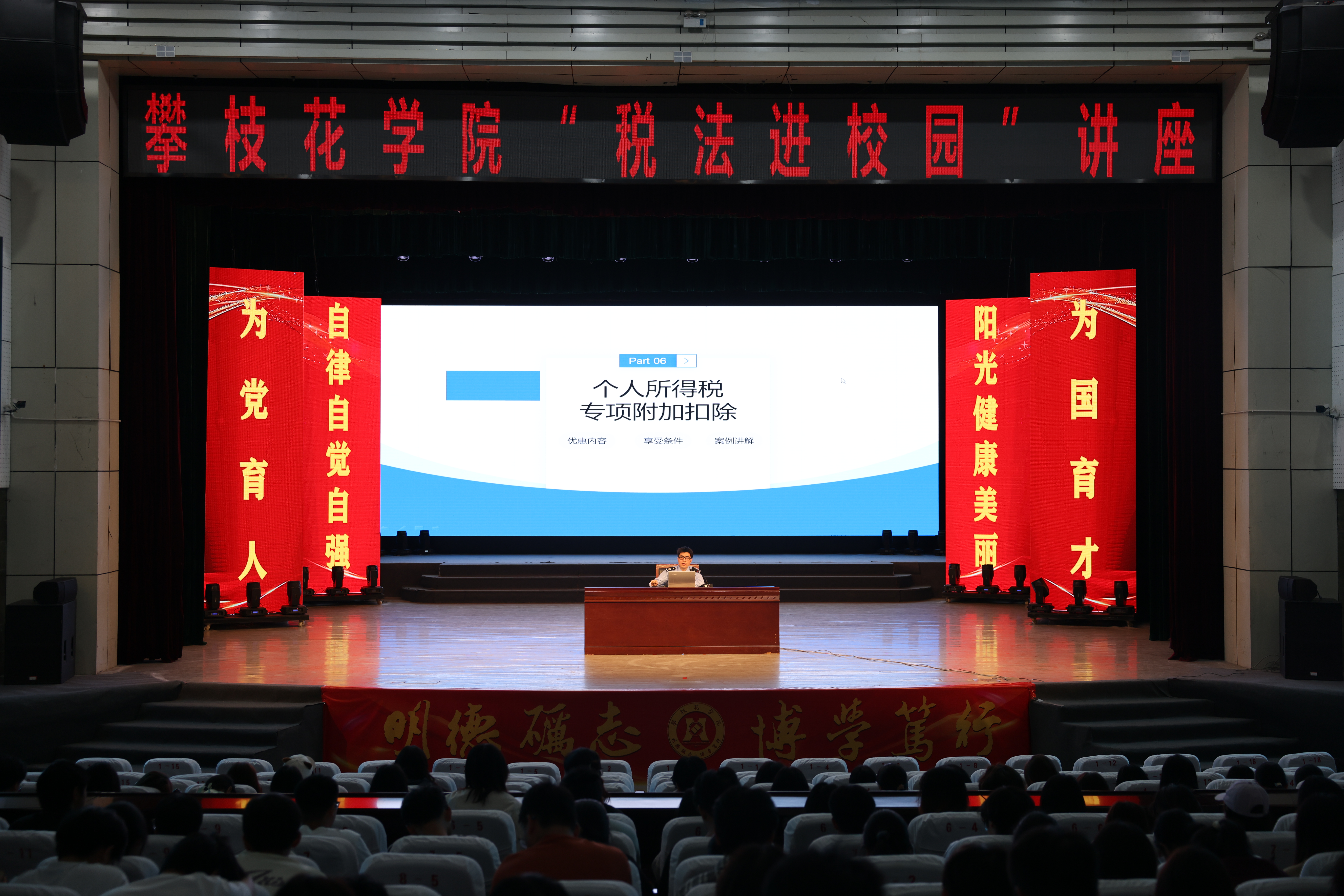 为提升我校学生税收法治意识,帮助青年学子掌握就业创业相关税收政策,11月14日下午,校在阳光会堂举行税法进校园普法宣讲活动本次活动由学校学工部东区税务局联合主办,400余名学生参与学习。