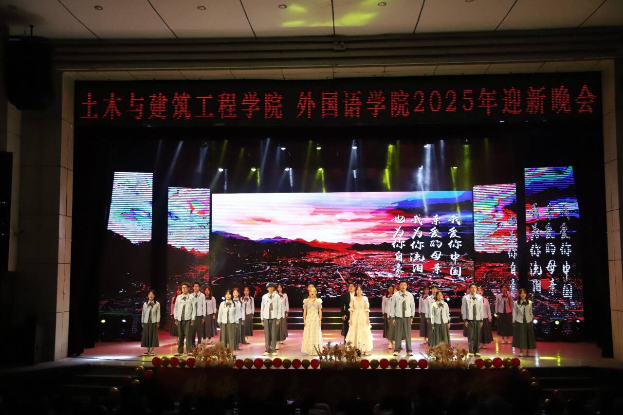 12月14日晚,外国语学院与土木与建筑工程学院于阳光会堂联合举办2025年迎新晚会。本次晚会以“砼筑芳华 译动青春”为主题,是学校首次两院联办迎新活动,800余名师生齐聚一堂,共同见证这场青春盛宴。